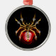 Mechanical, steampunk spider with gold, brass gears and a red glass lamp on a black background. Steampunk style.