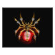 Mechanical, steampunk spider with gold, brass gears and a red glass lamp on a black background. Steampunk style.