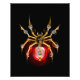 Mechanical, steampunk spider with gold, brass gears and a red glass lamp on a black background. Steampunk style.