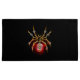 Mechanical, steampunk spider with gold, brass gears and a red glass lamp on a black background. Steampunk style.