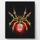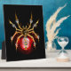 Mechanical, steampunk spider with gold, brass gears and a red glass lamp on a black background. Steampunk style.