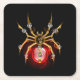 Mechanical, steampunk spider with gold, brass gears and a red glass lamp on a black background. Steampunk style.