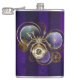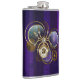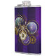 Steampunk spider made of gold and steel with antique watches decorated with gold gears on purple, striped, textured background with lenses and brass gears. Steampunk style.