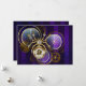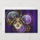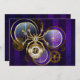 Steampunk spider made of gold and steel with antique watches decorated with gold gears on purple, striped, textured background with lenses and brass gears. Steampunk style.