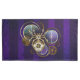 Steampunk spider made of gold and steel with antique watches decorated with gold gears on purple, striped, textured background with lenses and brass gears. Steampunk style.