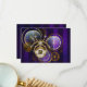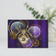 Steampunk spider made of gold and steel with antique watches decorated with gold gears on purple, striped, textured background with lenses and brass gears. Steampunk style.