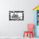 An 1800's drawn image of a steam fire engine bordered with a grunge black and white swirl.