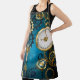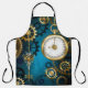 Turquoise, textured, steampunk background with brass and gold gears, a silver key and the clock. Steampunk style.