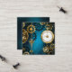Turquoise, textured, steampunk background with brass and gold gears, a silver key and the clock. Steampunk style.