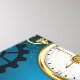 Turquoise, textured, steampunk background with brass and gold gears, a silver key and the clock. Steampunk style.
