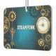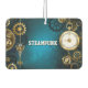 Turquoise, textured, steampunk background with brass and gold gears, a silver key and the clock. Steampunk style.