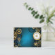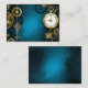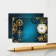 Turquoise, textured, steampunk background with brass and gold gears, a silver key and the clock. Steampunk style.