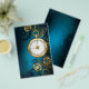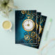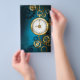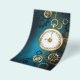 Turquoise, textured, steampunk background with brass and gold gears, a silver key and the clock. Steampunk style.