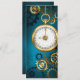 Turquoise, textured, steampunk background with brass and gold gears, a silver key and the clock. Steampunk style.