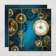 Steampunk turquoise Background with Gears Invitation