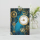 Steampunk turquoise Background with Gears Invitation