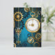 Steampunk turquoise Background with Gears Invitation