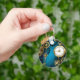 Steampunk turquoise Background with Gears Key Ring