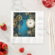 Turquoise, textured, steampunk background with brass and gold gears, a silver key and the clock. Steampunk style.