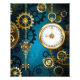 Turquoise, textured, steampunk background with brass and gold gears, a silver key and the clock. Steampunk style.