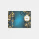 Turquoise, textured, steampunk background with brass and gold gears, a silver key and the clock. Steampunk style.