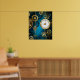 Steampunk turquoise Background with Gears Poster