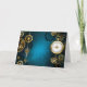 Turquoise, textured, steampunk background with brass and gold gears, a silver key and the clock. Steampunk style.