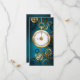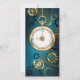 Turquoise, textured, steampunk background with brass and gold gears, a silver key and the clock. Steampunk style.