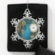 Steampunk turquoise Background with Gears Snowflake Pewter Christmas Ornament