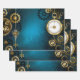 Steampunk turquoise Background with Gears Wrapping Paper Sheet