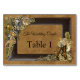 Gothic - Gold & Brass Steampunk Wedding on Suede texture with a dark leather frame - number and name cards for each table