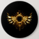 Shiny mechanical wings, with gears and brass round banner. Steampunk