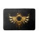 Shiny mechanical wings, with gears and brass round banner. Steampunk