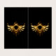Shiny mechanical wings, with gears and brass round banner. Steampunk