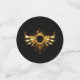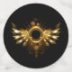 Shiny mechanical wings, with gears and brass round banner. Steampunk