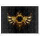 Shiny mechanical wings, with gears and brass round banner. Steampunk