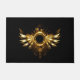 Shiny mechanical wings, with gears and brass round banner. Steampunk