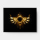 Shiny mechanical wings, with gears and brass round banner. Steampunk