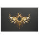 Shiny mechanical wings, with gears and brass round banner. Steampunk