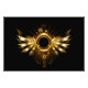 Shiny mechanical wings, with gears and brass round banner. Steampunk