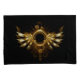 Shiny mechanical wings, with gears and brass round banner. Steampunk