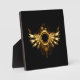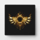 Shiny mechanical wings, with gears and brass round banner. Steampunk