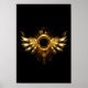 Shiny mechanical wings, with gears and brass round banner. Steampunk