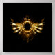 Shiny mechanical wings, with gears and brass round banner. Steampunk