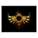 Shiny mechanical wings, with gears and brass round banner. Steampunk