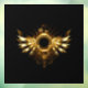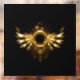 Shiny mechanical wings, with gears and brass round banner. Steampunk
