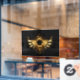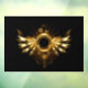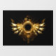 Shiny mechanical wings, with gears and brass round banner. Steampunk