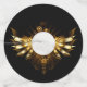 Shiny mechanical wings, with gears and brass round banner. Steampunk