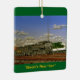 at christmass as a hanging decration for the chritmass tree.. its white porcline or cramic but very well made with added photo on one side.. also has a lovley red bag to keep it in.. execlent printed text in bold and black stands out well aganst the blue background of the photo.