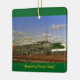 at christmass as a hanging decration for the chritmass tree.. its white porcline or cramic but very well made with added photo on one side.. also has a lovley red bag to keep it in.. execlent printed text in bold and black stands out well aganst the blue background of the photo.